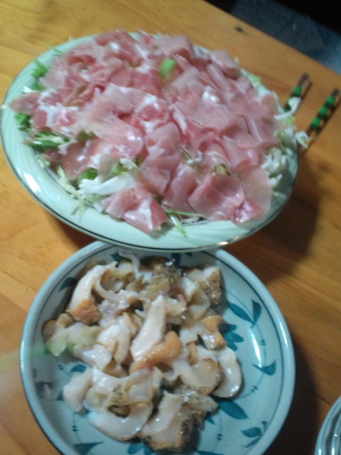 だからつぶ貝の刺身と生ハムサラダ食べてました。